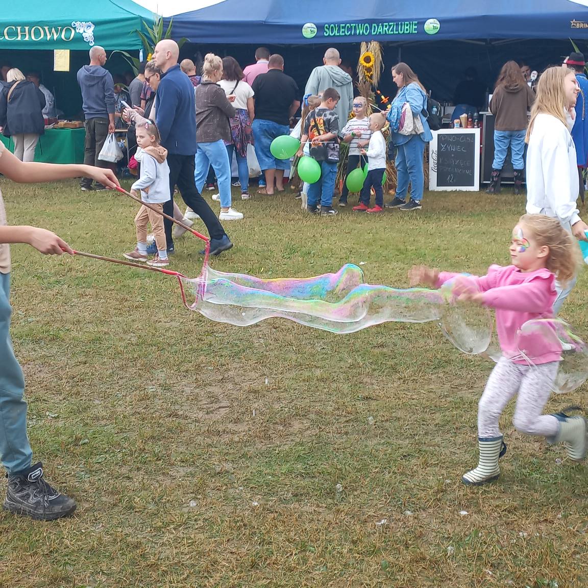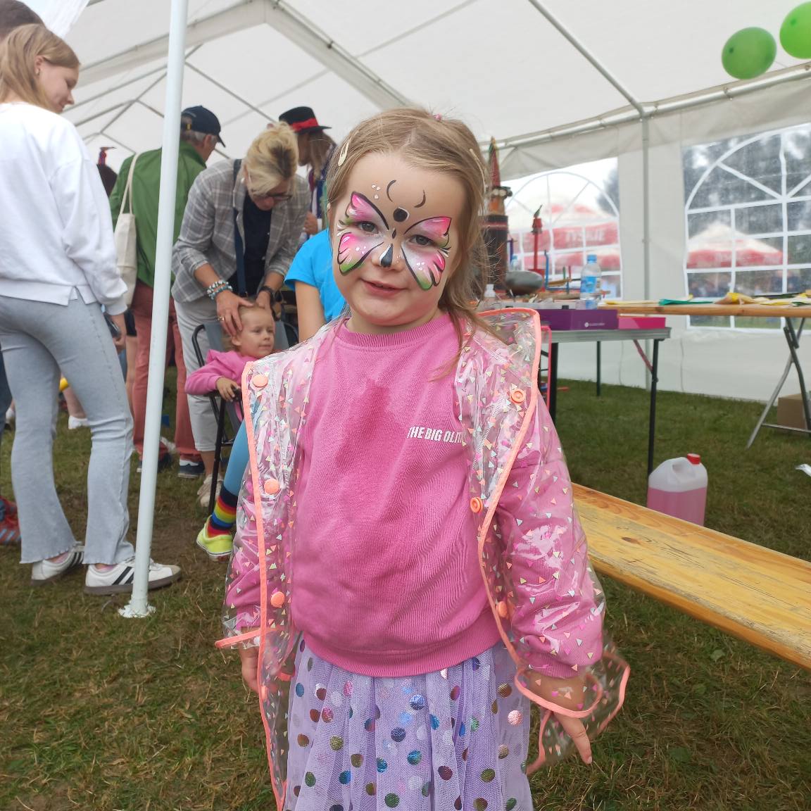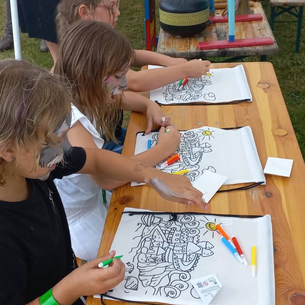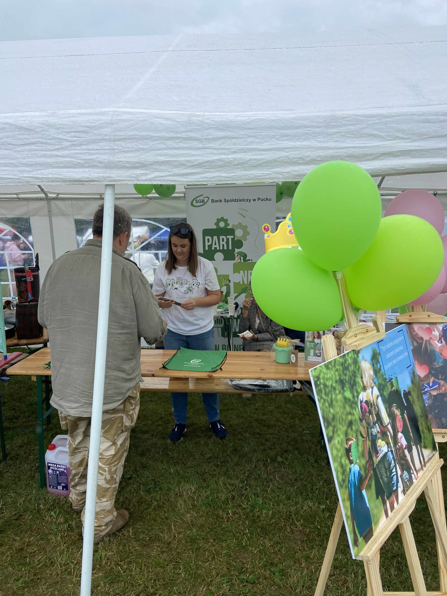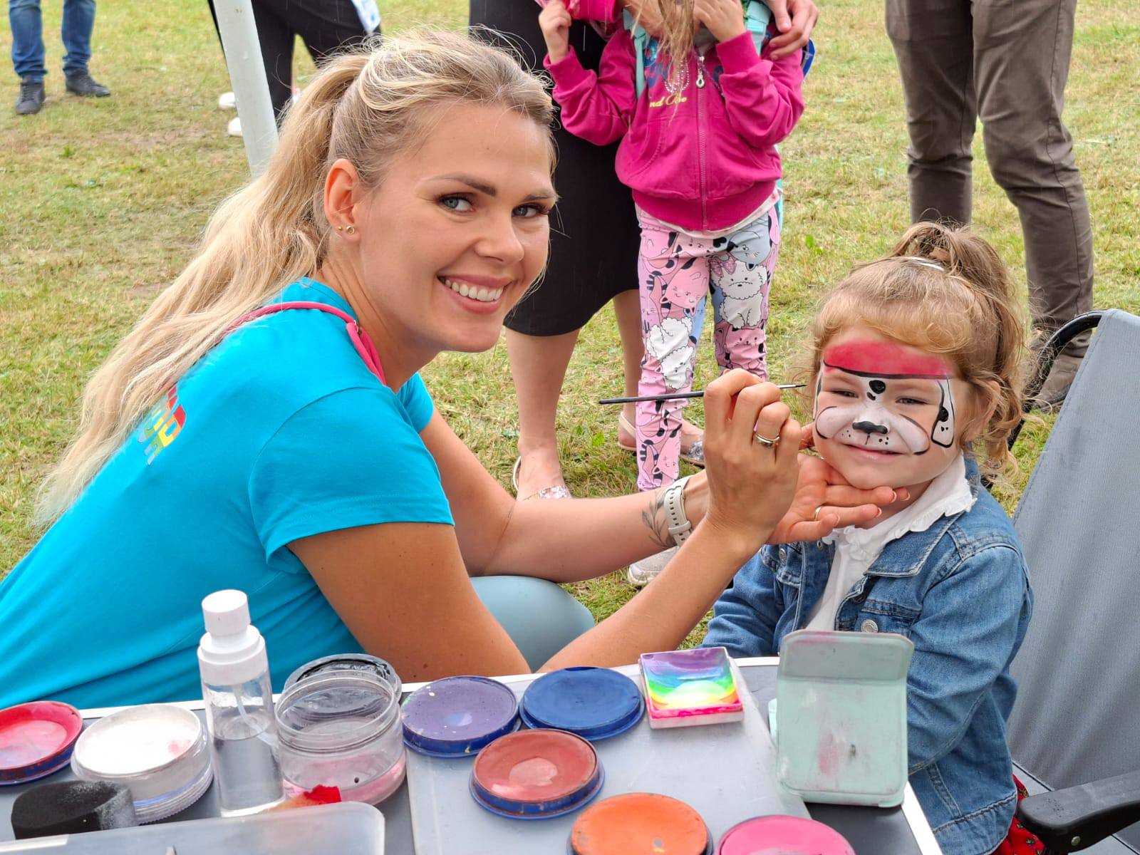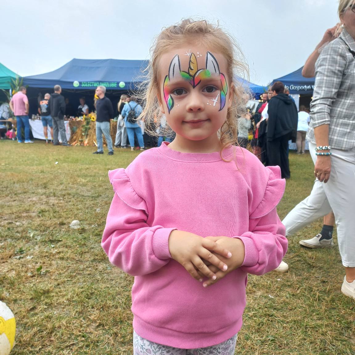 Na naszym stoisku również panowała radosna atmosfera. Odwiedzający mogli otrzymać zielone baloniki, długopisy, torby oraz inne upominki. Jedną z ulubionych atrakcji najmłodszych było malowanie twarzy – dzieci z radością wybierały wzory, a potem z dumą prezentowały swoje kolorowe buzie. Dla dzieci również przygotowaliśmy specjalną strefę baniek. W ramach zajęć kreatywnych najmłodsi uczestnicy mogli samodzielnie dekorować bawełniane worki-plecaki, rozwijając wyobraźnię i zdolności plastyczne.